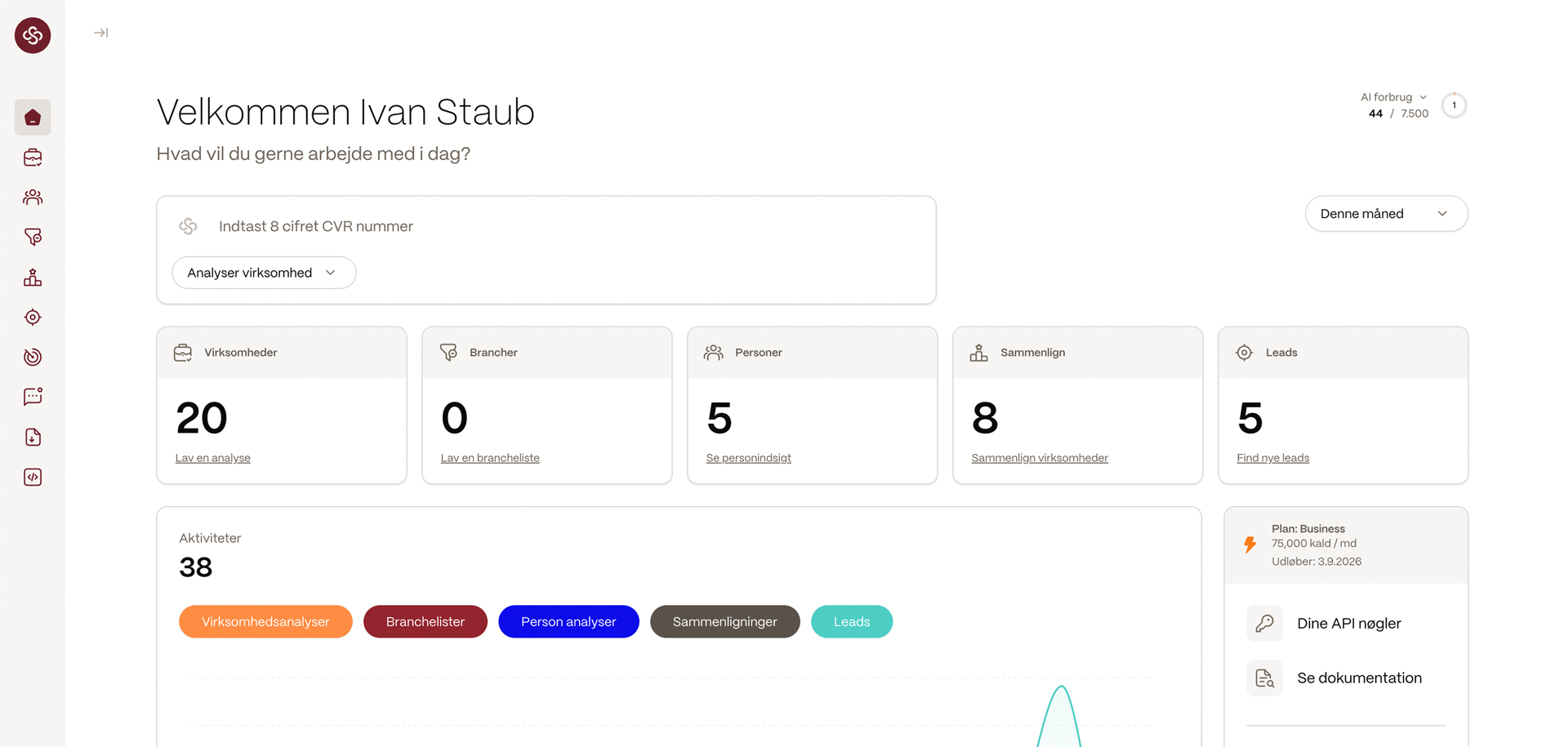 Brug vores API til at trække virksomhedsdata direkte ind i dit CRM, dit BI-værktøj eller dine egne systemer.