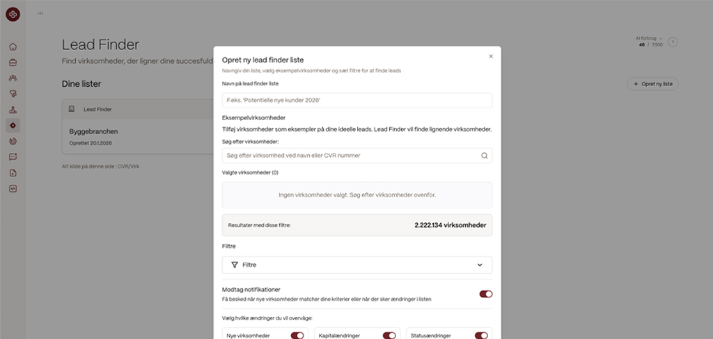 Med CVR Intel bygger du selv din leadliste ud fra de kriterier der betyder noget for dig: